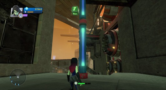 Above the northern door to the Docking Bay, smash through some metal blocking it.