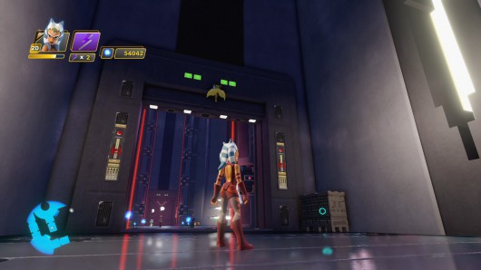 Flying around one of the purple energy beams in the final Maul room, you'll need to do a mission to get up there.